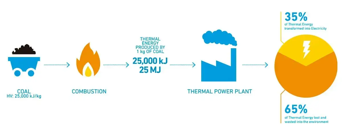 UTILIZACIÓN DEL CALOR RESIDUAL: En las plantas termoeléctricas convencionales a carbón, sólo un tercio de la energía es transformada en electricidad, mientras que los otros dos tercios se pierden en el medio ambiente a través del calor residual. Esto implica que enormes cantidades de energía térmica en forma de flujos de agua caliente se desperdician, principalmente a través de sistemas de enfriamiento. Se estima que la totalidad de energía térmica desperdiciada por procesos industriales es hasta 10 veces mayor que la energía producida por energías renovables, tales como plantas fotovoltaicas y eólicas. Adicionalmente, si pudiéramos utilizar todo el calor residual de centrales térmicas, las emisiones de dióxido de carbono (CO2) se reducirían en 50%. La tecnología de enfriamiento sustentable Crystal Lagoons®, permite capturar el calor residual de estos procesos y utilizarlo en diferentes aplicaciones, como desalinización térmica, calefacción residencial y de invernaderos, pre-calentar fluidos y procesos de secado, entre otros.